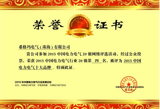 2、 热烈祝贺天博网页版_天博(中国)(珠海)有限公司荣获 2015中国电力电气20强网络评选活动第四名的成绩,被评为“2015中国电力电气十大品牌”称号